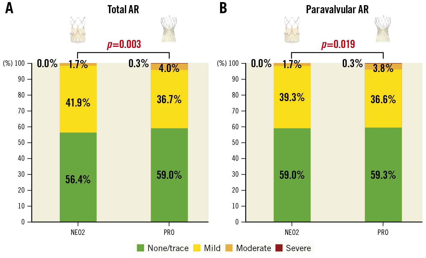 AR: aortic regurgitation; NEO2: ACURATE neo2; PRO: Evolut PRO/PRO+; TAVR: transcatheter aortic valve replacement