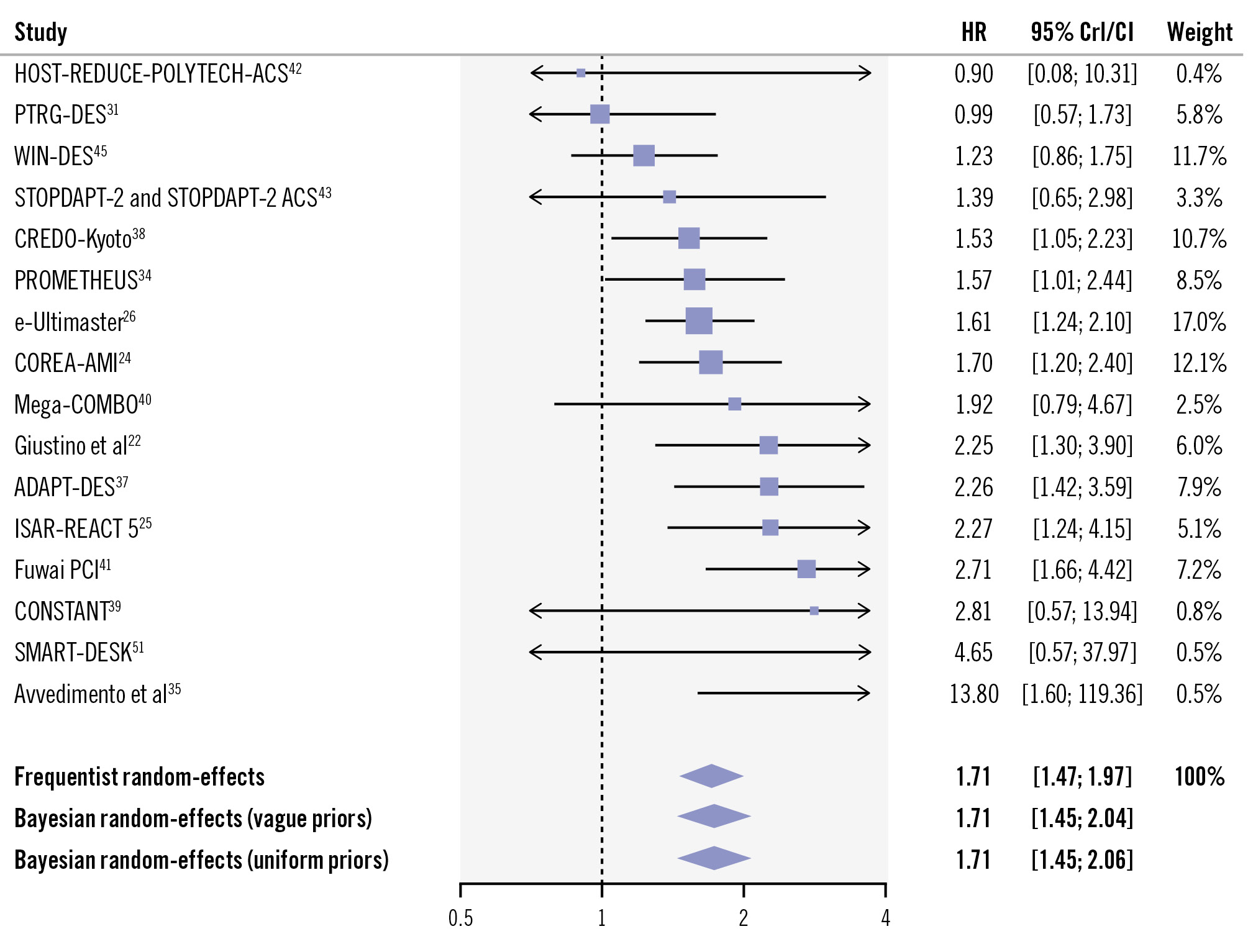 Against this background, we performed a systematic review and Bayesian meta-analysis to evaluate the association between complex PCI and the risk of ischaemic and bleeding outcomes.