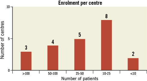 Figure 1. Distribution of participating centres according to the number of patients enrolled in the study.