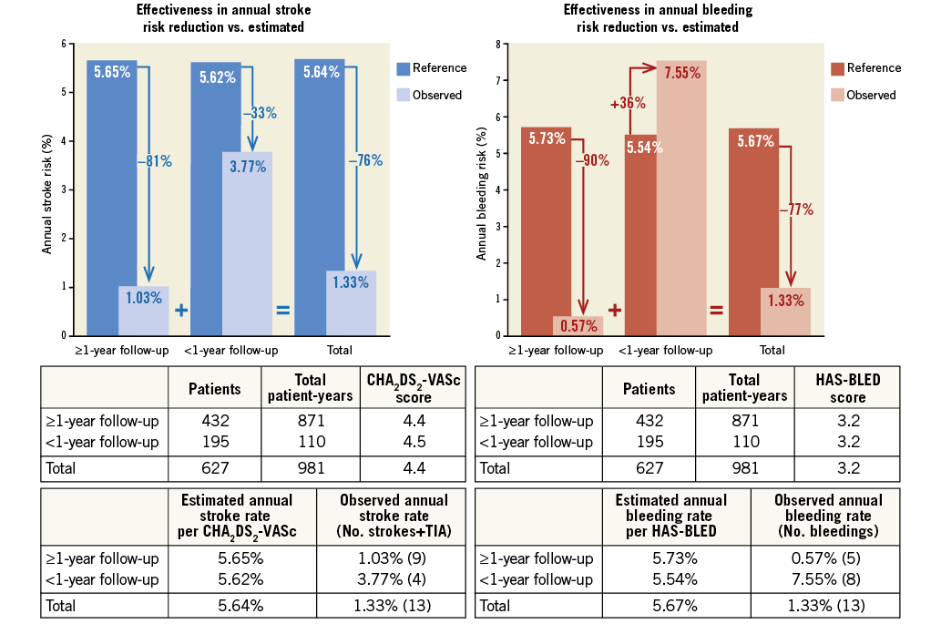 This is a non-randomised, retrospective, observational study, which included many large-volume centres. There was no control group and the use of CHA2DS2-VASc and HAS-BLED scores for comparisons (although validated) is methodologically imperfect. TEE follow-up was not available for all patients. The clinical and TEE results were self-reported and there was no independent adjudication. However, all the important events were discussed within the study group members and a written summary was provided.