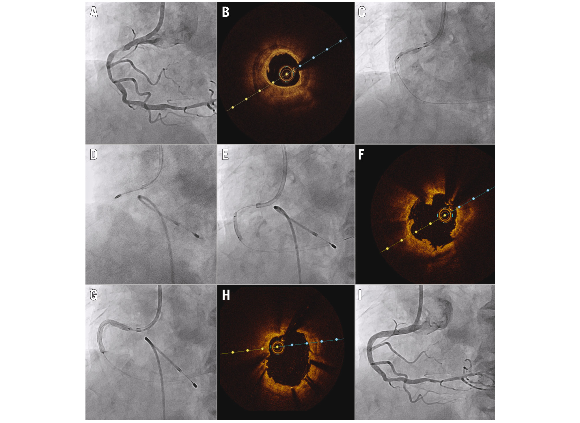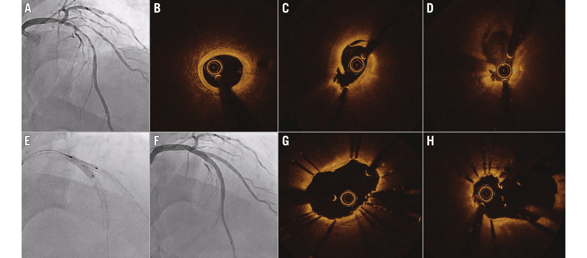 The main mechanistic benefits of atherectomy and lithotripsy are plaque fracture and/or abrasion of hard superficial calcium, allowing a more optimised stent expansion. A recent study has revealed that intravascular lithotripsy is highly effective and safe in treating calcified nodules, without major complications77. After modification of a heavily calcified lesion, intravascular lithotripsy can be repeated to confirm calcium fracture before stent implantation. A single-centre Japanese study suggested that OCT-guided rotational atherectomy resulted in greater stent expansion at the calcified target lesion compared to IVUS-guided rotational atherectomy78. However, given the currently limited data from RCTs on the optimal treatment of calcified lesions, further ongoing trials may provide valuable insights for this challenging subset. With the current evidence, it is reasonable to perform OCT to evaluate plaque modification in calcified lesions and to perform further treatment before stenting if dissections are not detected in most severe calcific lesions.