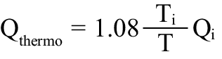 in which Qi is the infusion rate of saline by an infusion pump (in mL/min), Ti is the temperature of the infused saline when it exits the infusion catheter, and T is the temperature of the homogenous mixture of blood and saline in the distal part of the coronary artery during infusion. Ti and T are both relative to the normal blood temperature before the start of the infusion. The constant 1.08 relates to the difference between the specific heats and densities of blood and saline. Details of the measurements have been given previously.