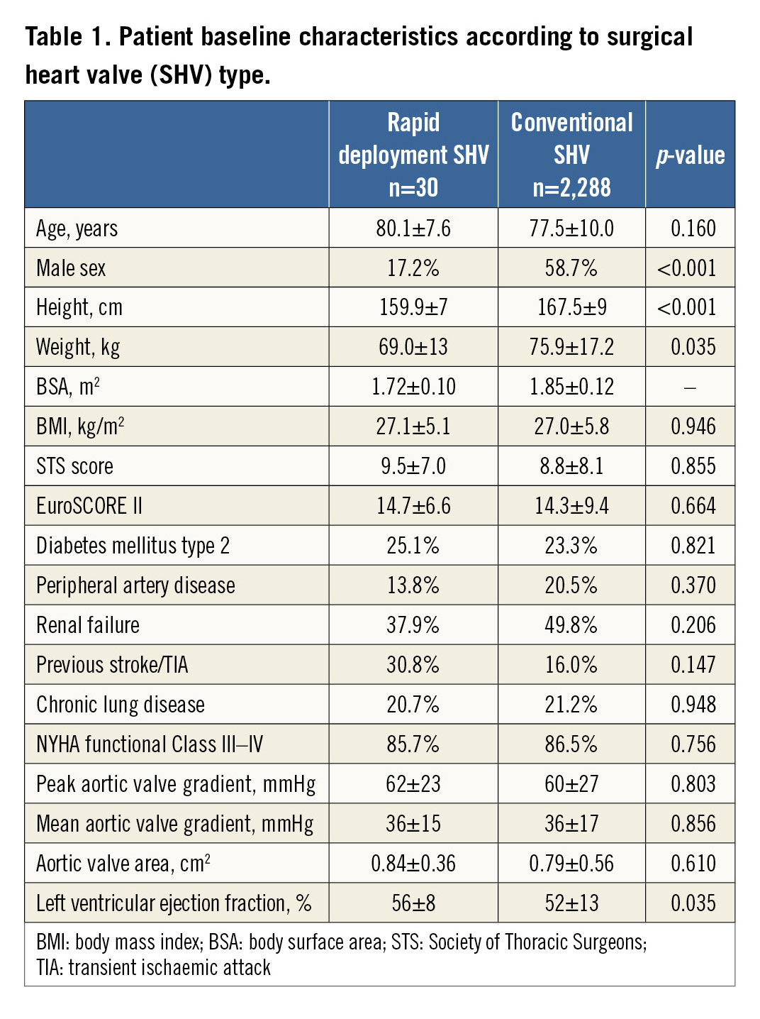 Data collected included basic demographic, historical and diagnostic information, procedural details and follow-up information related to THV function, reintervention, adverse events and clinical status. Major clinical endpoints were assessed according to the Valve Academic Research Consortium-2 consensus document19. Post-implantation haemodynamic data were obtained from either intraprocedural or first post-procedural echocardiography, with additional echocardiography performed during follow-up. The primary outcome was defined as 30-day mortality. Secondary outcomes were defined as stroke, need for a second valve, >mild residual aortic regurgitation and residual mean aortic valve gradient (mmHg) higher than 20 at 30 days, as well as mortality at one year. Other VARC-2-defined 30-day outcomes were also measured and reported.